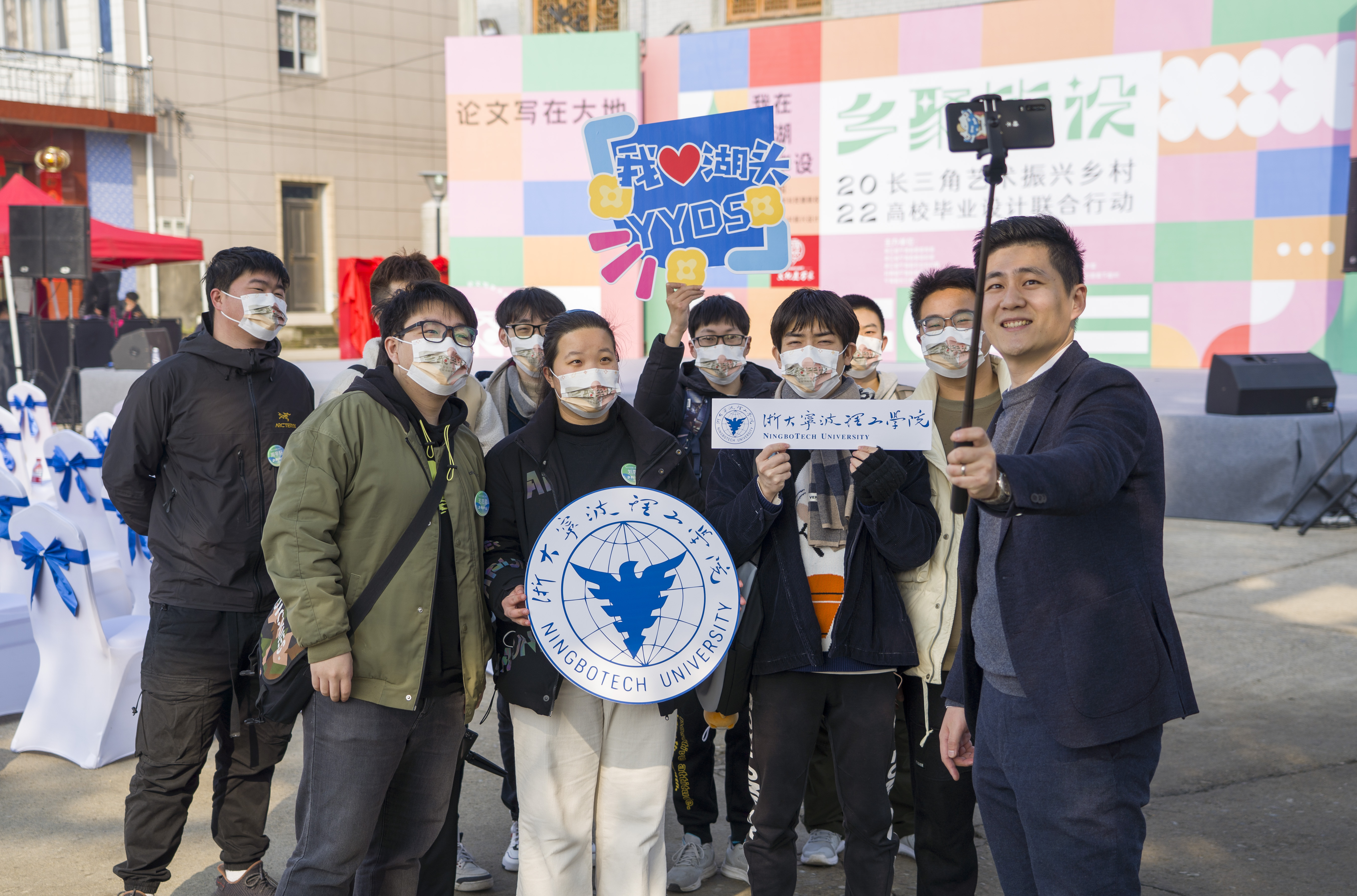 近年来,宁海县持续探索艺术振兴乡村的人才模式,强化乡村振兴的人才支撑。本次高校毕业设计联合行动由东华大学陈庆军教授发起,包括浙江工业大学、江南大学、合肥工业大学等12所高校参与,英国正版365官方网站是参与本次活动唯一的宁波本土院校。本次联合毕设采用了在地式培养方式,把课堂布置在乡村,将毕设课题“真题真做”,毕业论文撰写、毕业成果展览、毕业答辩与成果落地等全流程在地融合转化,结合村庄特点和村民智慧,保证设计作品的可持续性和落地性,让高校师生以具体行动参与乡村振兴、推动乡村共同富裕。