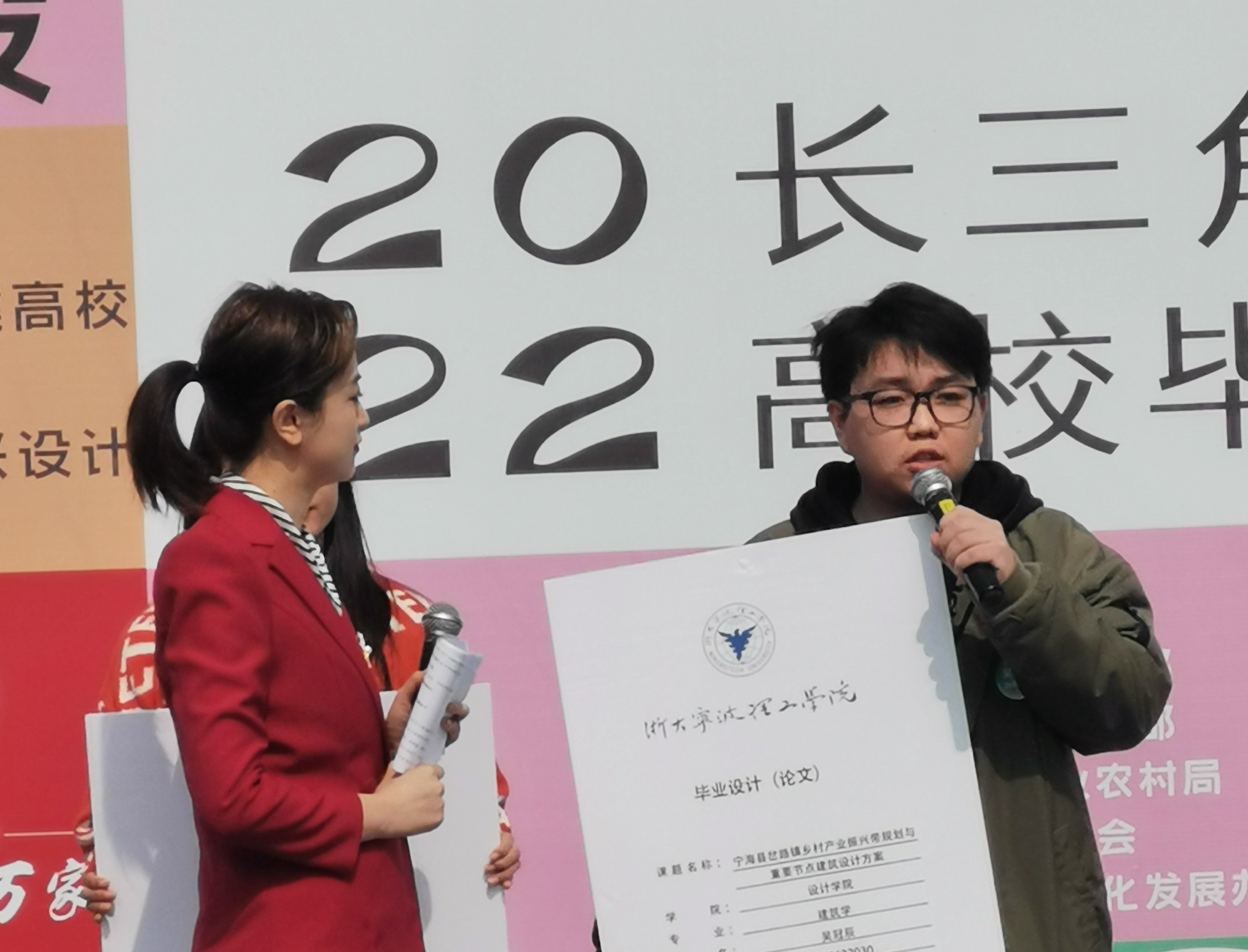12所院校的员工代表介绍了自己的毕业课题,并共同宣读《青年服务乡村振兴倡议书》。公司员工吴冠辰同学这样讲到,“自己对于乡村改观了太多,这是一个被赋予无穷可能性的新起点,正如‘把设计做在大地,把设计做进乡村’,所做的东西要能用、能留,由过去印象中破败的景象变成一个富有生机活力的地方,年轻人也愿意住的地方”。同时,吴同学还详细介绍了公司员工的两组课题,“我们的选题对于乡村的品质文化圈、产业振兴带进行整体规划与重要节点建筑设计,产业是经济基础可以带动文化发展,而文化也为产业的振兴加速提质,两者相互融合彼此促进,为乡村振兴、共同富裕贡献力量。”
