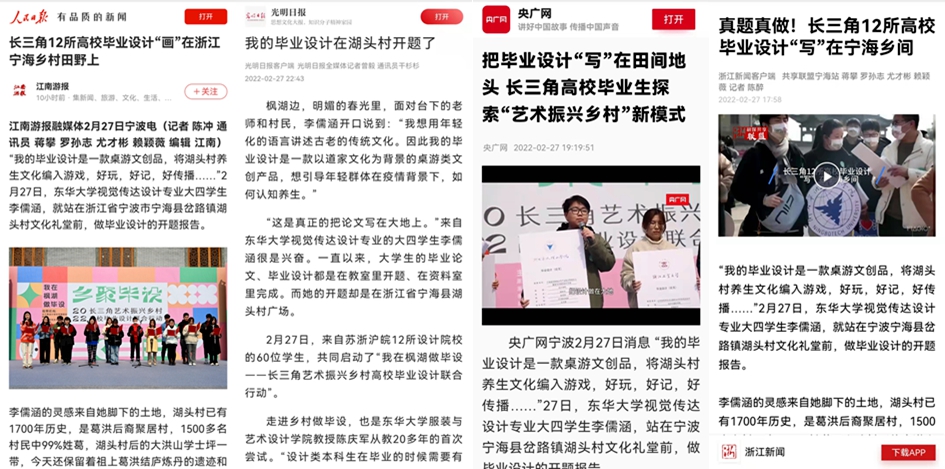 2022年2月27日,“乡聚毕设”2022长三角艺术振兴乡村高校毕业设计联合行动在浙江省宁波市宁海县岔路湖头村正式拉开序幕。英国上市公司365教师王欣凯、王志蓉、姚佳携公司十余名建筑学同学共同参与,同长三角12所高校设计专业的师生一起走进宁海,把毕业论文写在大地上,用设计助力乡村振兴。本次活动被人民日报、光明日报、央广网、浙江日报、宁波日报等多家各级别媒体报道。